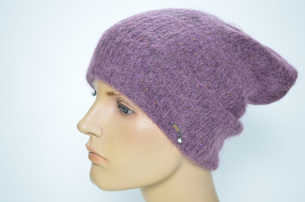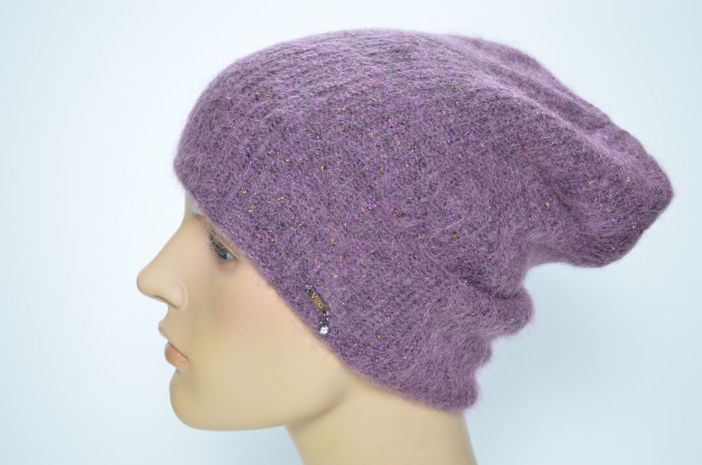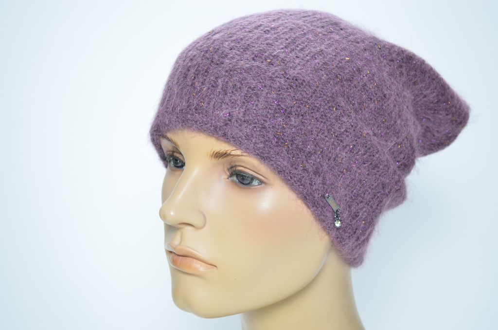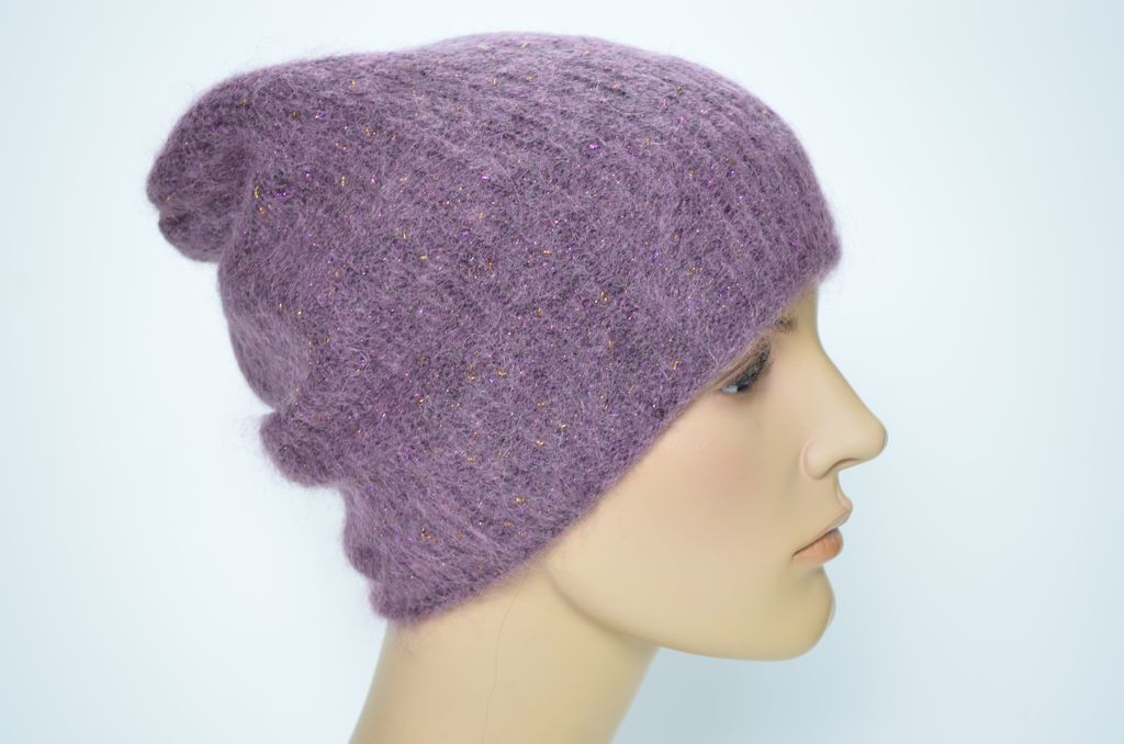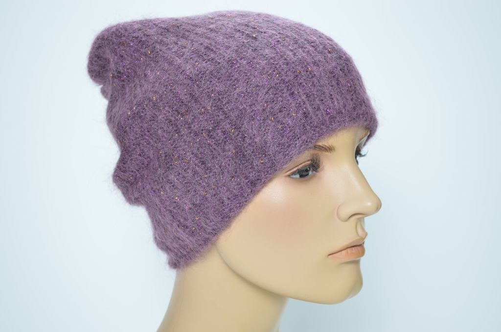 Вязаная шапка женская сиреневого цвета