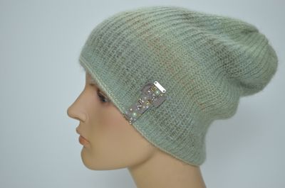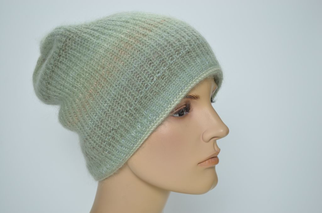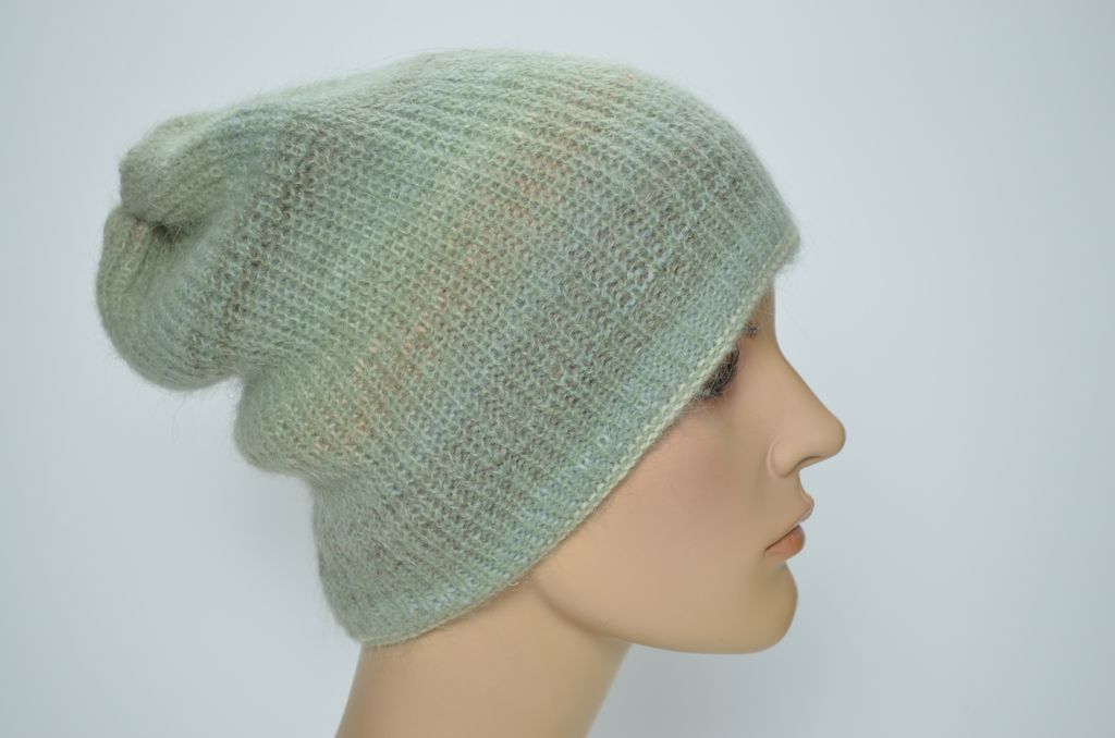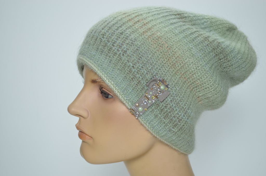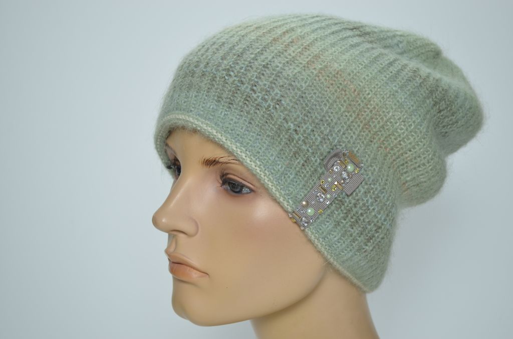 Итальянская вязаная шапка зимняя женская мятного цвета